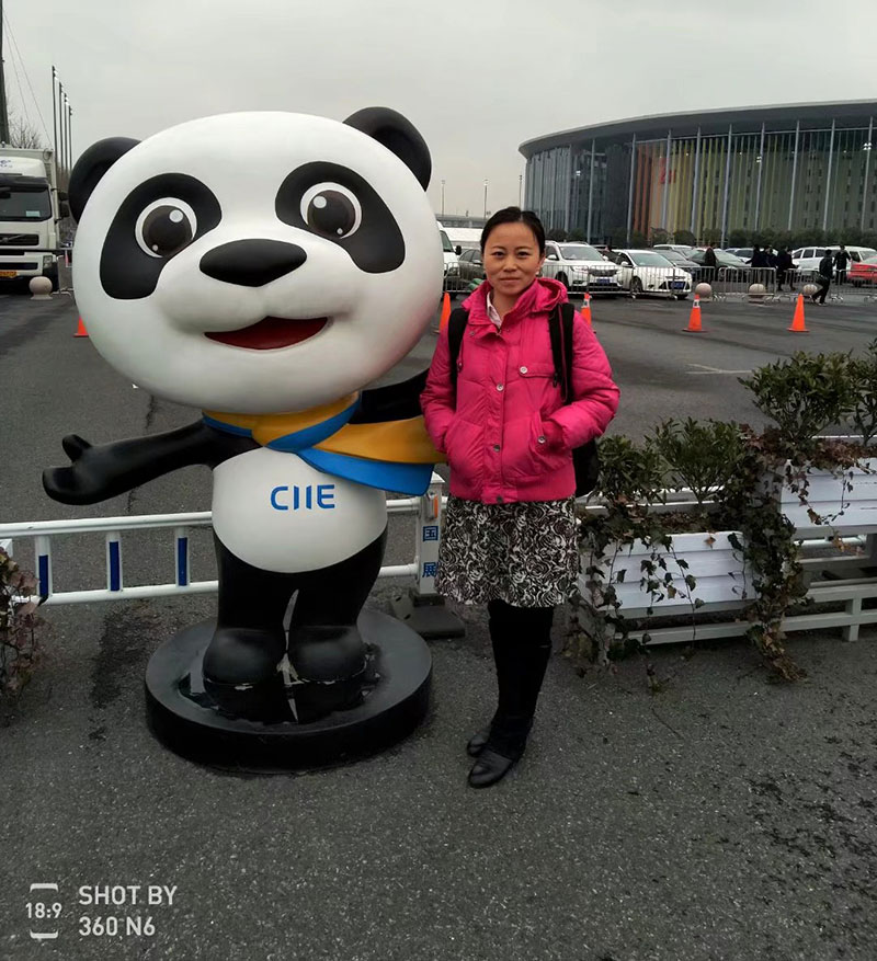 參加上海進(jìn)博會(huì)時(shí)在展館前留影: